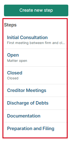 When setting up a workflow step, you can choose specific actions that should take place. This article covers how to adjust trust accounting-related step actions. Specifically, you can choose to have your matter automatically open a trust accounting record for this matter as the user moves to this step.