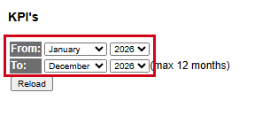 - Click the From and To date fields to set the date range for the KPIs. (Then click Reload to update the table below these options with the dates you've selected.)