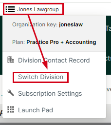 • If your system is configured to use multiple divisions, the accounts list will show your current division.