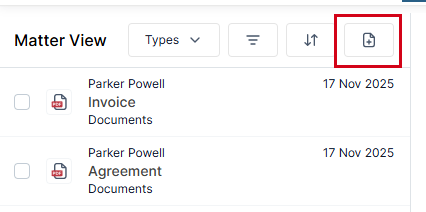 TIP: You can also generate a document from the matter's View page. To do this, edit the matter and click the View menu icon. Then click the Generate Document icon and complete the information required for generating the document. The completed document will be included in the list on this page.