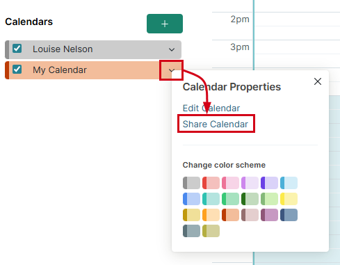 - Next to the calendar you want to share, click the drop-down arrow and choose Share Calendar.