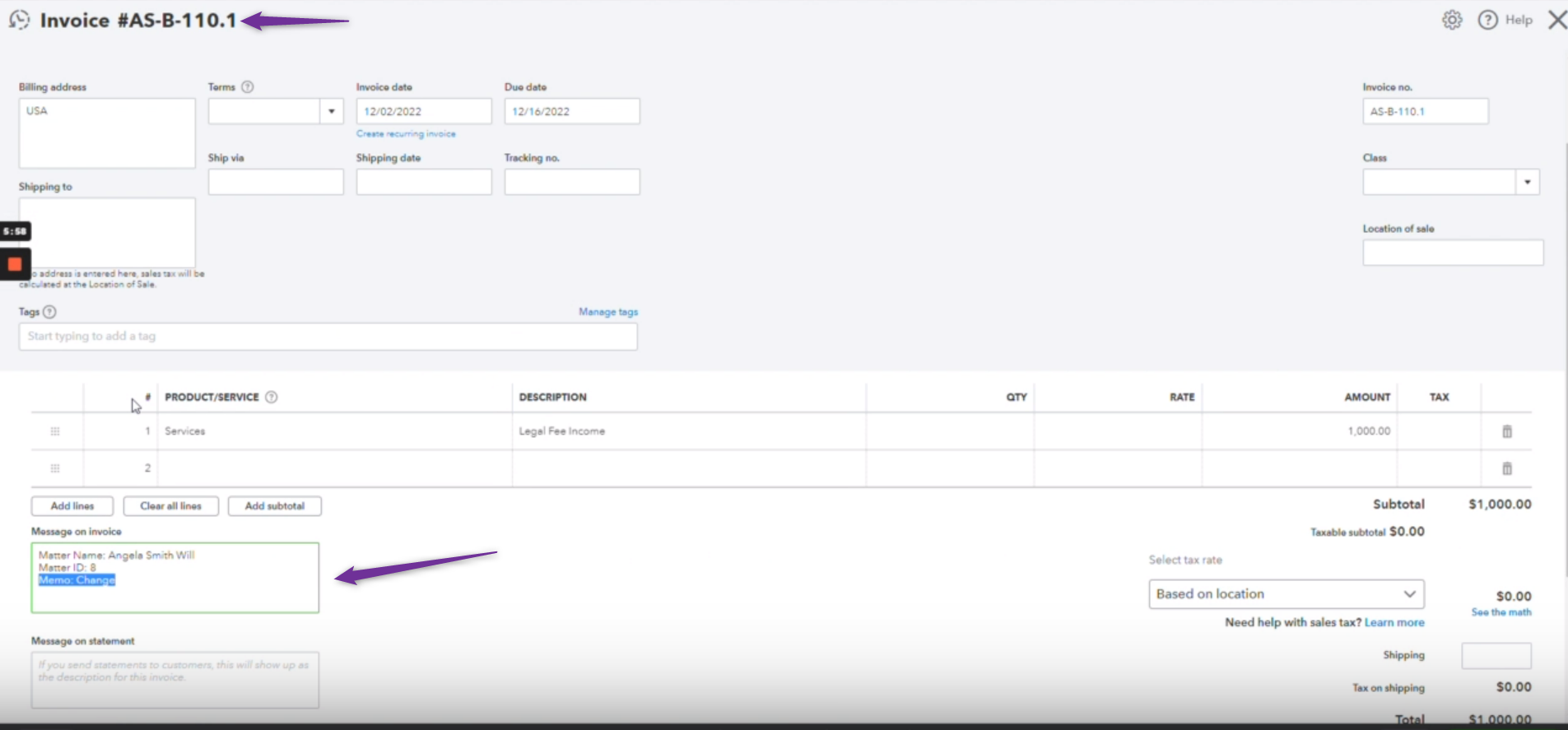 Now, the following additional fields have been added to Invoices. This has been done to present more information on the invoice pushed through to QuickBooks Online, which should make it easier for accountants working in QuickBooks Online to understand them and to see which matter the invoice is associated with.