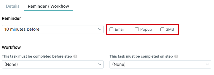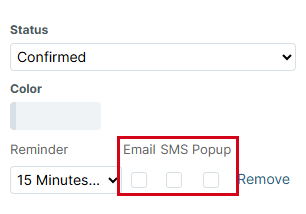 4. Select the type of reminder (Email, SMS, or Popup). You can select multiple options.